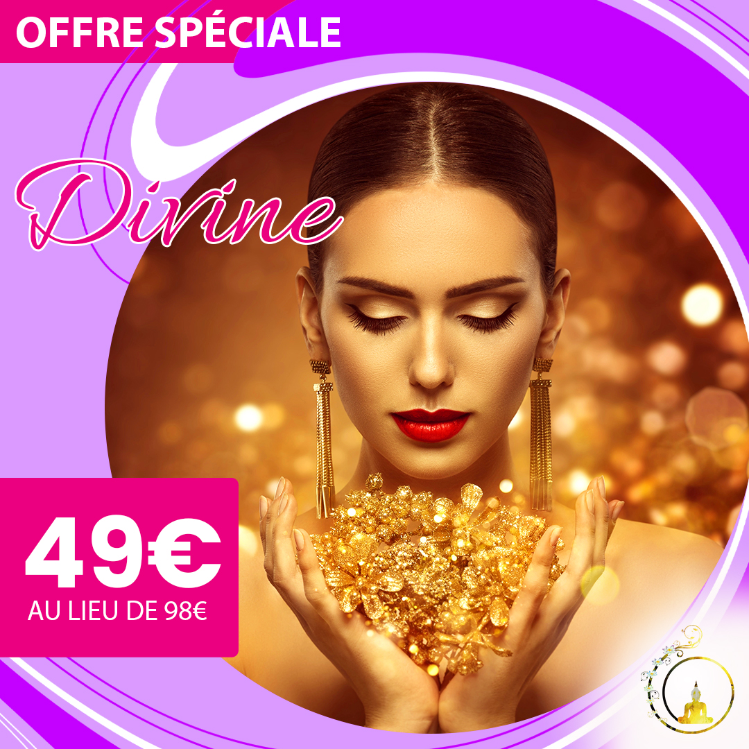 + 1 Soin complet du visage en 7 étapes (Acheté) + 1 Massage du CORPS ENTIER de 30min (Offert) + 1 Harmonisation des 7 chakras (Offerte) + 1 Pose de vernis simple pieds (Offerte) = Le tout pour 49€ au lieu de 98€ (Durée du soin 2H00)